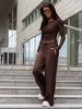 Polecamy!Bestseller!Wiskozowy KOMPLET dopasowana bluzka z długim rękawem i luźne spodnie czekoladowy E351