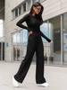 Bestseller!Wiskozowy KOMPLET dopasowana bluzka z długim rękawem i luźne spodnie czarny E351