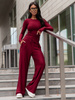 Wiskozowy KOMPLET dopasowana bluzka z długim rękawem i luźne spodnie bordowy E351