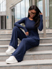 ( ilość produktów: 405 )Wiskozowy KOMPLET dopasowana bluzka z długim rękawem i luźne spodnie navy blue E351