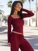 Bestseller!Dopasowana BLUZKA z wiskozy z kwadratowym dekoltem bordowa X23 k01