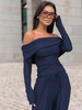 Wiscozowa dopasowana BLUZKA opuszczana na ramiona z długim rękawem navy blue X416