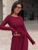 Wiscozowa dopasowana BLUZKA z długim rękawem bordowa X417