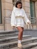 Dresowa bawełniana oversizowa SUKIENKA BLUZA kangurka z kapturem z gumką w pasie ecru X314 k01