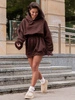 Dresowa bawełniana oversizowa SUKIENKA BLUZA kangurka z kapturem z gumką w pasie brązowa X314 k01