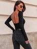 Bestseller!Obcisła BLUZKA z długim rękawem z gołymi plecami z wiskozy czarna E349