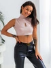 Krótki TOP bez rękawów z półgolfem z miękkiej sweterkowej dzianiny brudny róż D574 k01