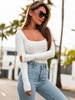 Dopasowane BODY z wiskozy kwadratowy dekolt ecru E40 k01