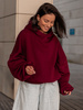 ( ilość produktów: 300 )Viralowa Bawełniana BLUZA z drapanego dresu z kapturem na stójce z kieszeniami kangurka bordowa E1