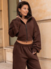 Viralowa Bawełniana BLUZA z drapanego dresu z kapturem na stójce z kieszeniami kangurka brązowa E1