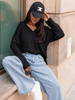 Luźny codzienny SWETER o klasycznym splocie z dekoltem w serek czarny X301