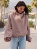 Bawełniana krótka oversizowa BLUZA dresowa z kapturem kangurka mokka X51 k01