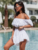 KOMPLET bluzka hiszpanka z odkrytymi ramionami i asymetryczne spódnico spodenki ze zwiewnej tkaniny biały X123 k01