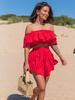 KOMPLET bluzka hiszpanka z odkrytymi ramionami i asymetryczne spódnico spodenki ze zwiewnej tkaniny czerwony X123 k01