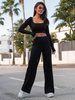 Codzienny KOMPLET top z kwadratowym dekoltem i luźne spodnie z szerokimi nogawkami z modalu o fakturze prążka czarny X12 k01