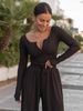 Bestseller!Codzienny KOMPLET bluzka i dopasowane spodnie z szerokimi nogawkami z prążkowanej dzianiny wiscoza i bawełna czekoladowy X502