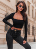 Dopasowana BLUZKA z długim rękawem z kwadratowym dekoltem z wiskozy czarna E350 k01