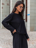 Bawełniany T-SHIRT bluzka z długim rękawem z poduszkami na ramionach czarna X308
