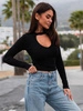 Dopasowana bawełniana BLUZKA z prążkowanej dzianiny z modalem z wycięciem na biuście czarna X67 k01