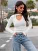 Dopasowana bawełniana BLUZKA z prążkowanej dzianiny z modalem z wycięciem na biuście ecru X67 k01