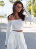 Dopasowana BLUZKA opuszczana na ramiona z chokerem z gładkiej dzianiny biała E538