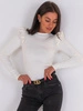 Bawełniana BLUZKA z elastycznej dzianiny prążkowanej z falbankami na ramionach ecru E510 k01