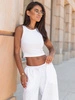 Bawełniana dopasowana BLUZKA basic z prążkowanej dzianiny na ramkach biała X255