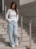 Bawełniany T-SHIRT bluzka z długim rękawem z poduszkami na ramionach biała X308 k01