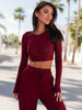 Dopasowana BLUZKA krótki top basicowy z wiskozy z długim rękawem bordowa X21