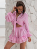 Zwiewna KOSZULA oversizowa wiązana w kratkę baby pink X206 k01