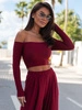 Dopasowana BLUZKA krótki top z wiskozy opuszczana na ramiona bordowa X19 k01