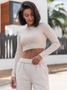 Obcisła BLUZKA z długim rękawem z gołymi plecami z wiskozy biała E349