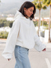 Bawełniana krótka oversizowa BLUZA dresowa z kapturem kangurka ecru X51 k01