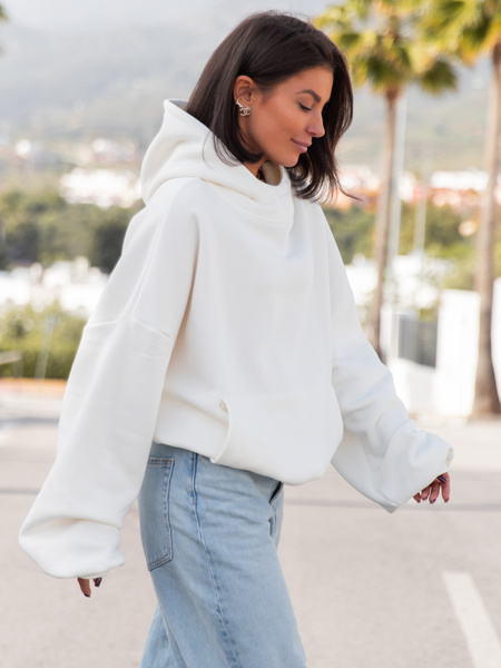 Luźna BLUZA z kapturem oversize szeroka z bawełnianej dresówki niedrapanej od wewnątrz biała X150 k01