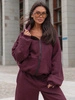 Oversizowa BLUZA z kapturem zapinana na zamek bluzowana kangurka z bawełnianej dresówki deep plum / śliwkowy X1