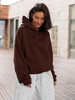 Viralowa Bawełniana BLUZA z drapanego dresu z kapturem na stójce z kieszeniami kangurka brązowa E1