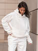 Viralowa Bawełniana BLUZA z drapanego dresu z kapturem na stójce z kieszeniami kangurka ecru E1