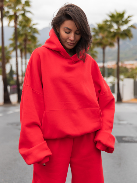 ( ilość produktów: 470 )Viralowa Dresowa bawełniana BLUZA z kapturem oversize szeroka koralowa E644 k01