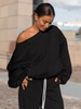 Dresowa bawełniana BLUZA opuszczana na ramiona oversize szeroka czarna X400
