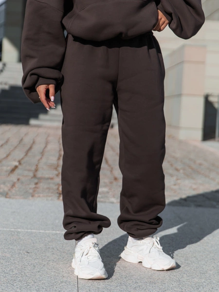 Dresowe bawełniane SPODNIE ze ściągaczami dark chocolate X32