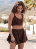Dresowy bawełniany KOMPLET krótki top na ramkach i krótkie spodenki czekoladowy X120 k01
