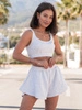 Dresowy bawełniany KOMPLET krótki top na ramkach i krótkie spodenki ecru X120 k01
