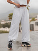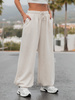 Dresowe bawełniane SPODNIE z lnem baggy ze sznurkiem beż melanż X55 k01