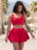Dresowy bawełniany KOMPLET krótki top na ramkach i krótkie spodenki koralowy X120 k01