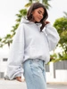 Viralowa Bawełniana BLUZA z drapanego dresu z kapturem na stójce z kieszeniami kangurka ecru E1