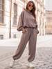 Bestseller!Dresowy bawełniany KOMPLET oversizowy bluza z kapturem i szerokie spodnie ze ściągaczami coffee E315