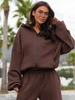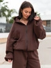 Oversizowa BLUZA z kapturem zapinana na zamek bluzowana kangurka z bawełnianej dresówki brązowa X1