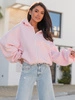 Oversizowa BLUZA z kapturem zapinana na zamek bluzowana kangurka z bawełnianej dresówki baby pink X1