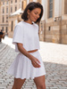 Dresowy bawełniany KOMPLET długi oversizowy t-shirt i krótkie spodenki biały X134 k01