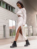 Swetrowy KOMPLET luźna bluzka z poduszkami i spódnica długość maxi z rozporkiem ecru X352